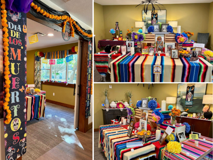 Each fall, residents at Morningside Ministries in San Antonio come together to celebrateย Dรญa de los Muertos by creating a beautifulย ofrenda, or offering altar. Rooted in Mexican tradition, the ofrenda honors the memory of loved ones who have passed, and is traditionally decorated with candles, marigolds, photographs, and favorite foods of the departed.